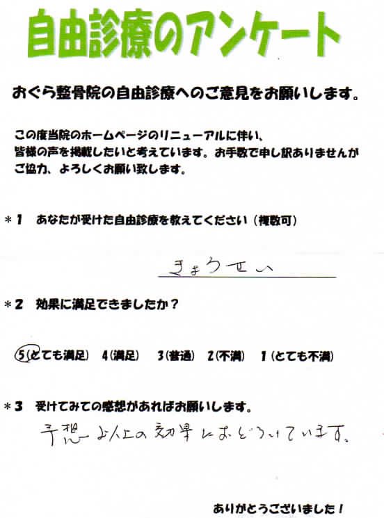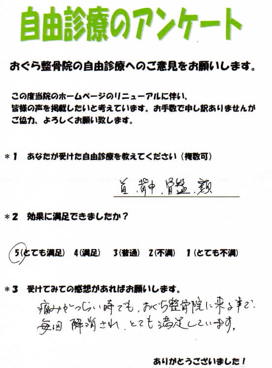 歪み矯正・骨盤矯正のご感想