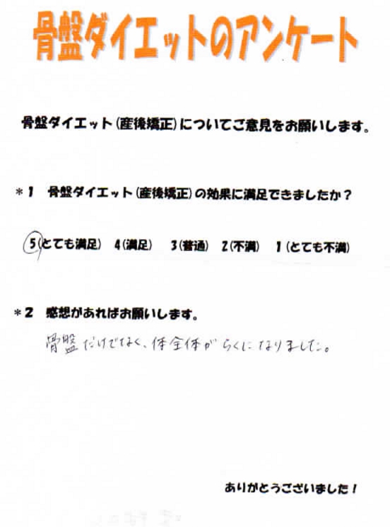 - 骨盤だけでなく、体全体がらくになりました。