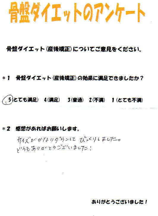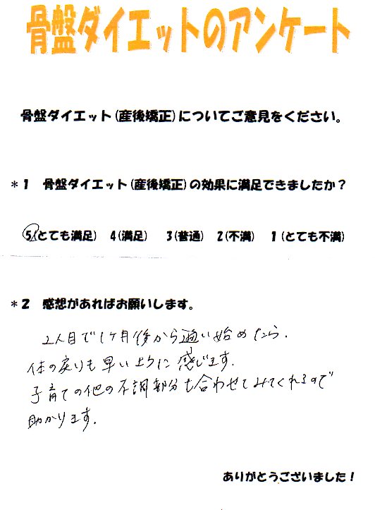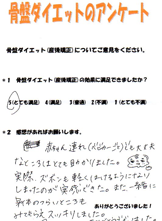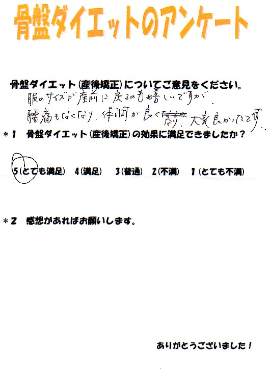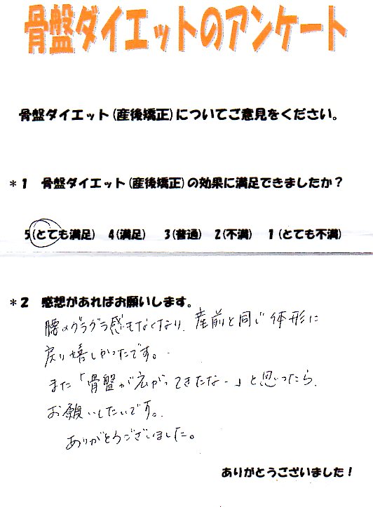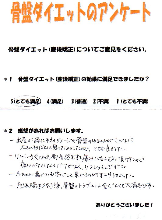 産後矯正終了後、骨盤のトラブルは全くなくて大満足でした