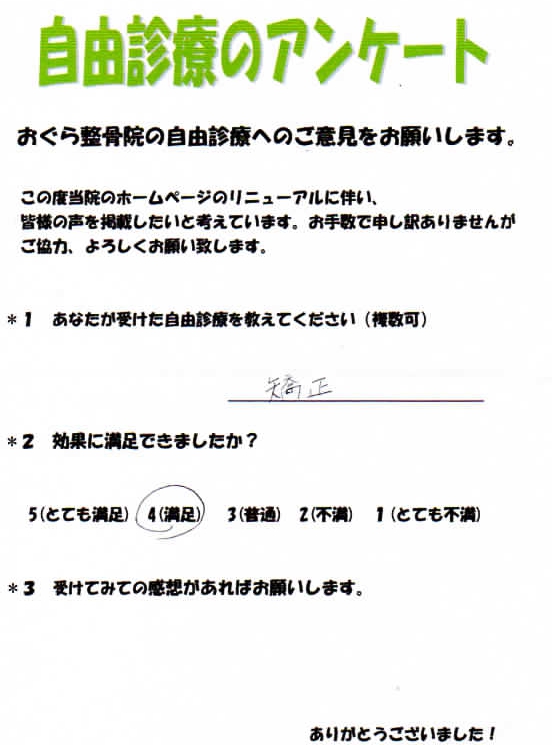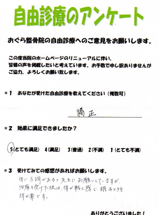 歪み矯正・骨盤矯正のご感想